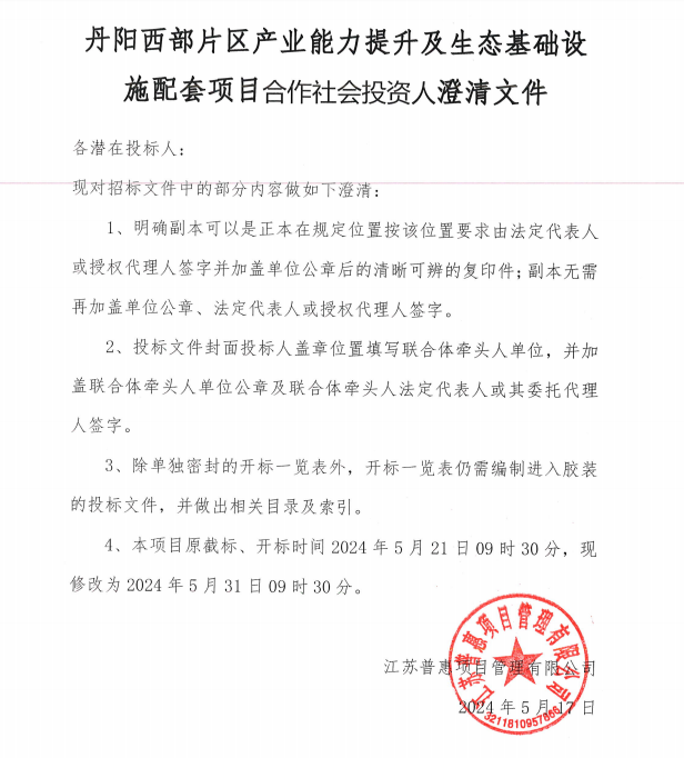 丹陽(yáng)市正大工程造價(jià)咨詢(xún)有限公司受丹陽(yáng)國(guó)發(fā)控股集團(tuán)有限公司委托,就丹陽(yáng)國(guó)發(fā)控股集團(tuán)有限公司對(duì)外投資類(lèi)項(xiàng)目公開(kāi)遴選評(píng)估服務(wù)第三方服務(wù)…